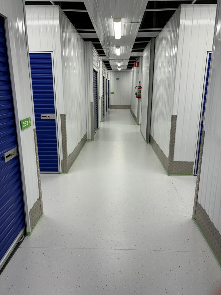 Deze Epoxy Coatingvloer staat niet alleen garant voor een strakke en moderne uitstraling, maar biedt ook duurzaamheid en functionaliteit, aangepast aan de eisen van een opslaglocatie.